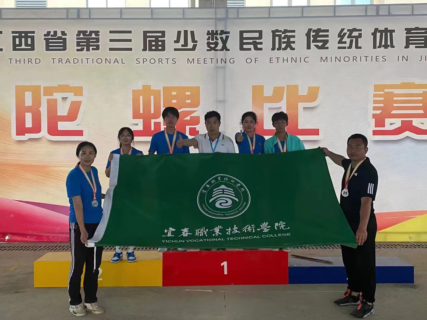 本届运动会以“平等、团结、拼搏、奋进”为宗旨,以铸牢中华民族共同体意识为主线,以促进民族团结进步和全民健身事业发展为目标,以“民族风情、运动风采、铜都风韵”为主题;来自全省11个设区市代表团的运动员参加了射弩、蹴球、高脚竞速、板鞋竞速、毽球、陀螺、民族健身操7个竞赛项目。买球官网师生参加了蹴球、陀螺、民族健身操三个项目的角逐并取得佳绩,荣获1个一等奖,6个二等奖,2个三等奖。胡琼等4位教练员被评为优秀教练员。