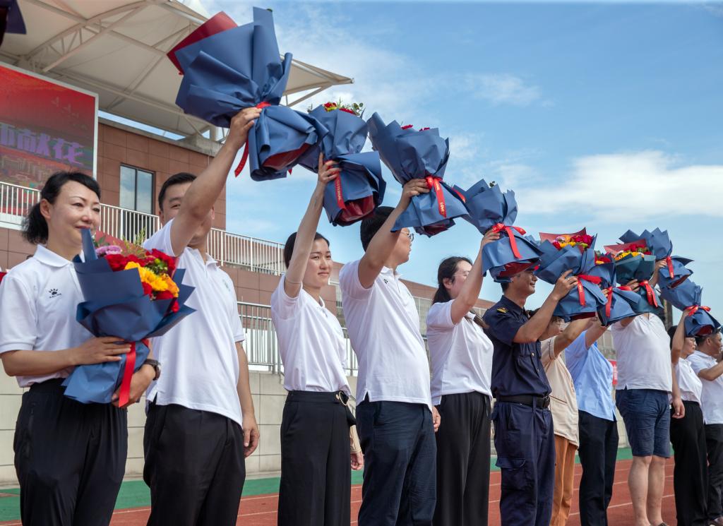毕业生代表们向教职员工代表献花,表达心中的感谢,致敬彼此陪伴的时光。