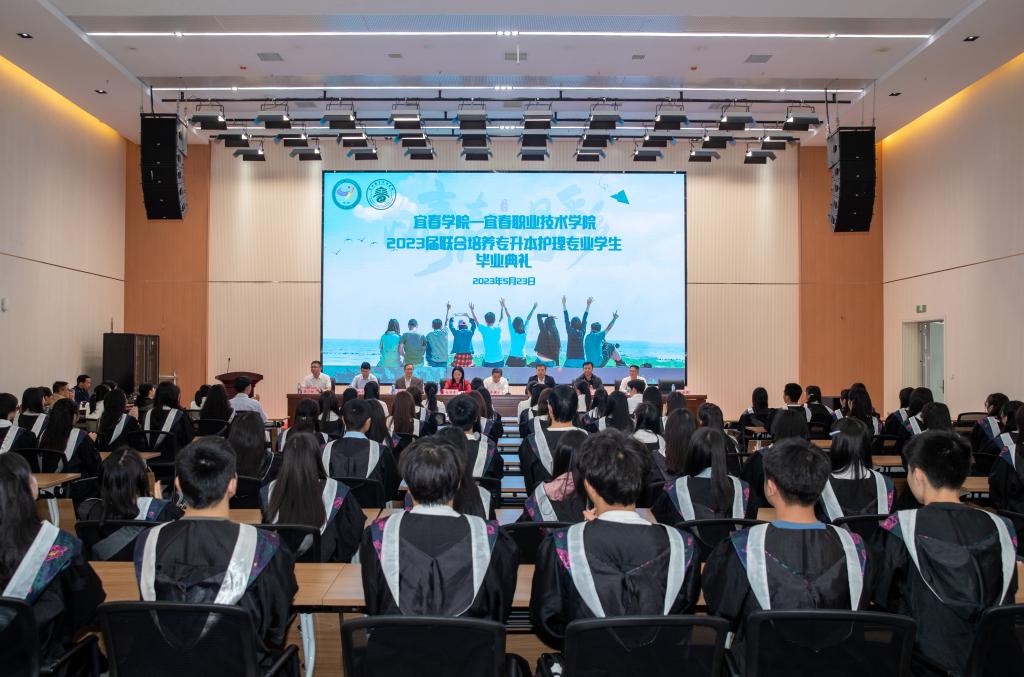 日前,宜春学院、体育买球官方网站在学术报告厅举行2023届联合培养专升本护理学专业学生毕业典礼。宜春学院党委委员、副校长李建军,教务处副处长肖平平、医学院院长易少波、学工处副处长黄华彩;买球官网党委副书记、校长邱军,副校长易滨秀有关部门负责人,教师代表及2023届联合培养专升本护理专业全体学生出席典礼。