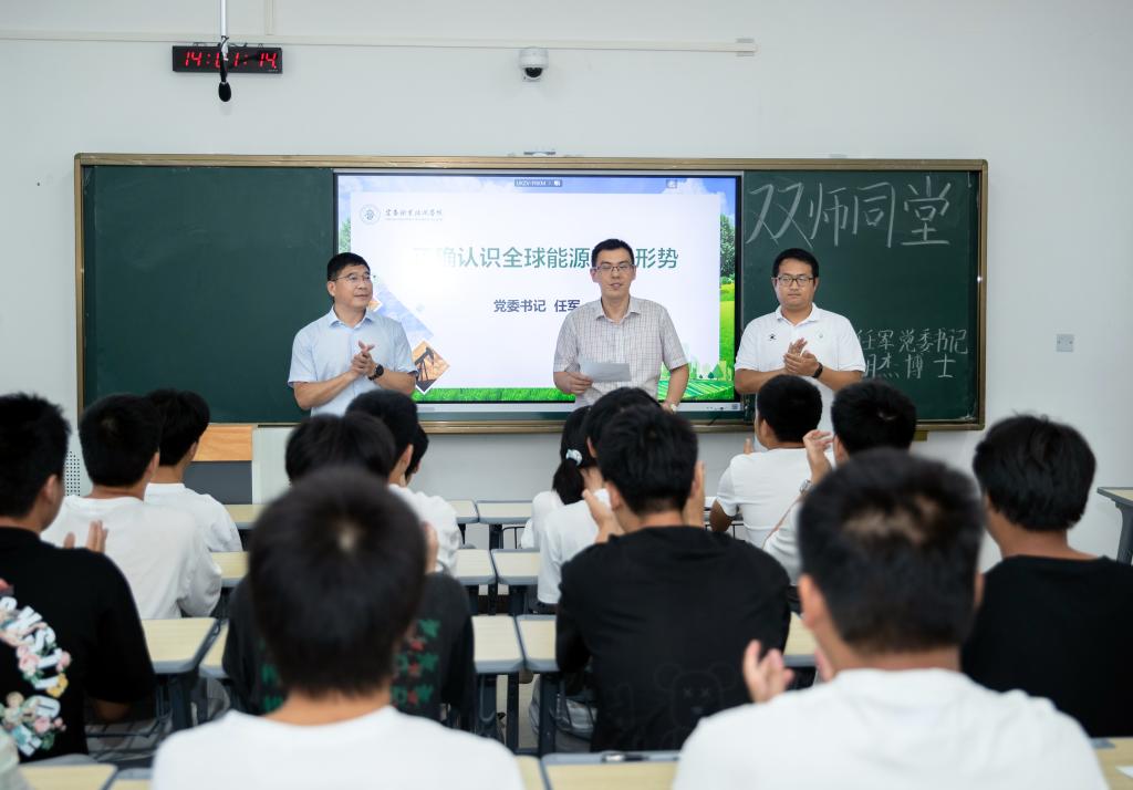 当日,任军和机电与新能源汽车学院教师胡杰博士为材料22301班学生授课,学生进行实训展示,“双师同堂”“师生同台”尽展宜职新风。任军以“正确认识全球能源安全形势”为主题,从世界能源安全危机日益加剧、维护世界能源安全任重道远、打赢我国能源安全主动战多角度展开讲授,引导学生高度关注全球能源危机,提升能源安全认知水平,练就过硬专业本领。他号召同学们自觉融入国家能源安全建设当中,发展壮大我国能源产业。在实训教室,胡杰以“我国新能源行业(锂电材料)发展现状及前景”为主题,重点讲授了锂电材料行业的发展现状、锂电技术的优异性、锂电应用的广泛性,并现场指导学生进行实训操作,展现专业风采,鼓励学生们树立创新意识,增强“锂”想之心,为新能源事业发展贡献青春力量。