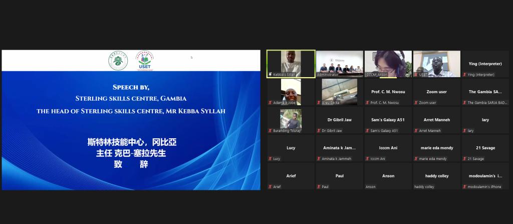 本站讯(国际合作与交流处 王若婷)10月20日下午,买球官网冈比亚“中文+新能源汽车技能培训”开班仪式暨线上培训课在博达楼501顺利举行。冈比亚斯特林技能中心主任克巴塞拉,冈比亚应用科学工程与技术大学主席塞缪尔·P·奥乌苏·奥福里教授、机械工程系主任阿尔伯特·K·桑努教授、电气工程系主任坦·M·诺沃苏教授及教师代表,买球官网副校长刘江毅以及国际合作与交流处、机电与新能源汽车学院负责人及培训相关教师20余人参与开班仪式,冈比亚应用科技工程与技术大学30余名学员听取线上培训课。本次开班仪式暨线上培训课得到了马来西亚国际文化交流中心大力支持。