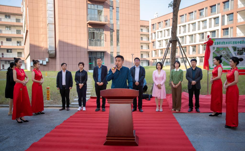 任军代表学校对杨经伟为母校捐赠生态园表示衷心的感谢。他谈到,药香弥漫国粹传,中药文化润校园,今天揭幕的生态园和早前开馆的中药科技馆开启了中医药文化进入宜职校园的新篇章。同时寄语全体师生以此为契机,树立起人与自然和谐共生的理念,增强对中华优秀传统文化的自豪感,为建设健康宜春、健康中国贡献智慧和力量。