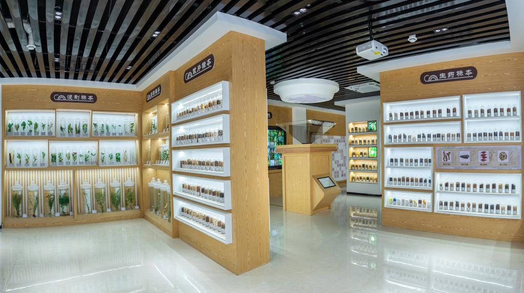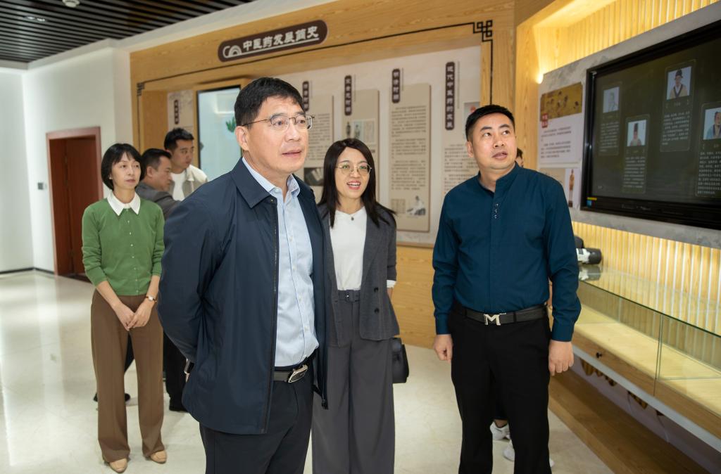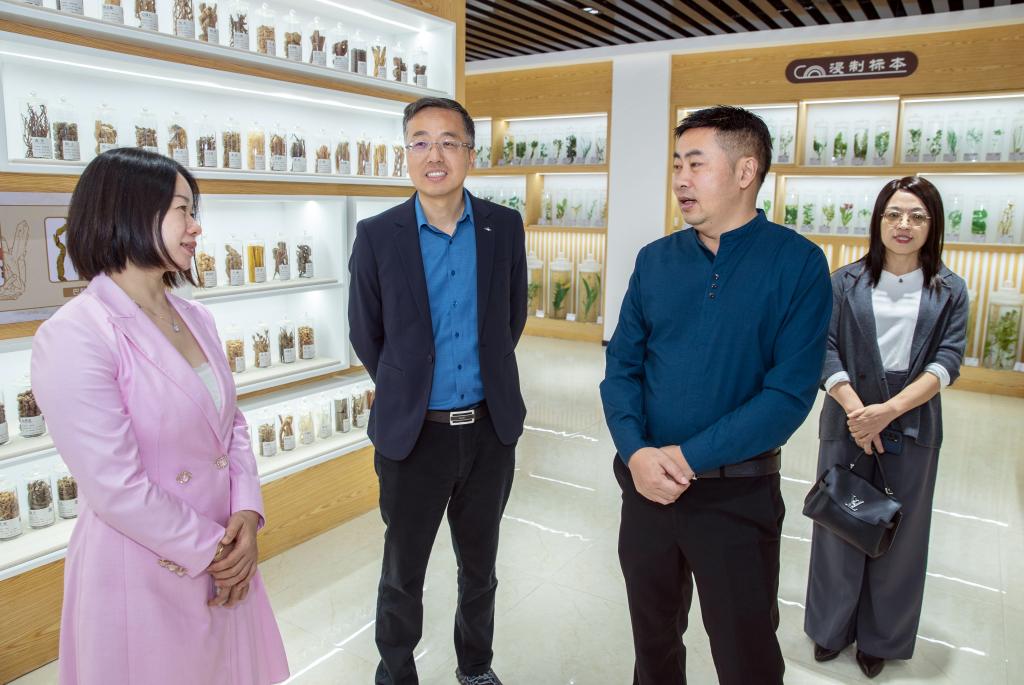 仪式结束后,校领导陪同杨经伟先生和陈秀英女士参观了中药科技馆。杨经伟一行对我馆的布展创意表示赞赏,并就中药材的展示、保管和鉴别等提出许多建设性意见。