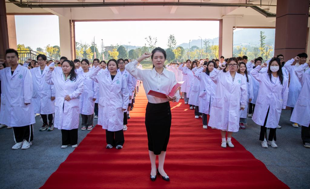 仪式上,全体师生在生态园前进行庄严的医学誓词宣誓。生态园揭幕暨捐赠仪式在隆重而庄严的气氛中圆满结束。