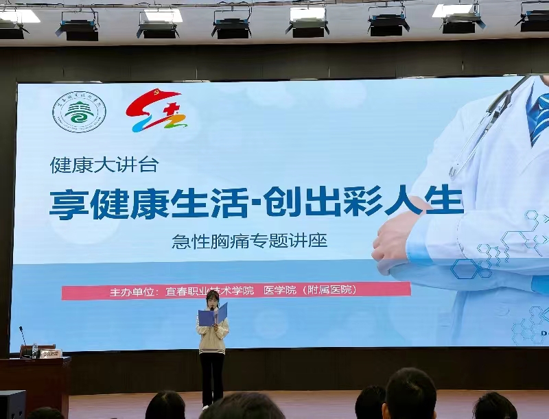 本站讯(医学院 李翔)为普及健康教育知识,提升买球官网附属医院业务水平,10月25日晚,医学院(附属医院)在仁济楼小礼堂举行“享健康生活,创出彩人生”急性胸痛专题讲座。讲座特邀宜春市人民医院心内科主治医师邹晓荣主讲,附属医院全体医务人员、部分教师及校红十字会、青春健康同伴社和医学院医疗志愿者协会等300余名师生代表参加。