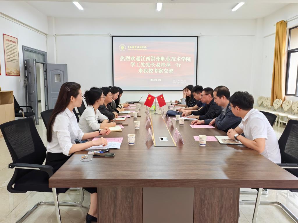 本站讯(学工处 杨文姝)4月25日,江西洪州职业学院学工处处长易桂林一行来买球官网考察交流,买球官网学工处处长谢海英及相关人员陪同。