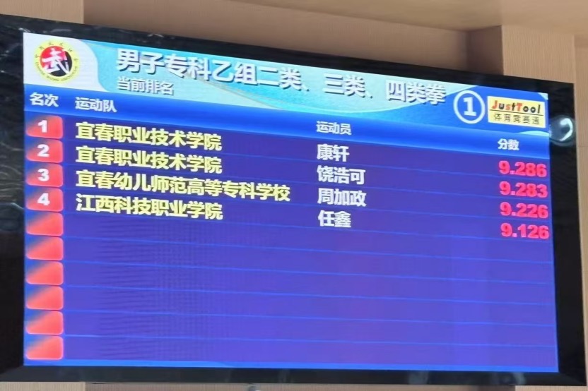 比赛中,队员们拳术如疾风骤雨,太极行云似水,棍术刚劲有力,充分展现中华武术的文化底蕴与竞技之美,体现宜职学子的良好风貌。在传统类项目中,23体教冯嘉璐的南刀、24体教康轩的洪拳,在比赛中技艺精湛,气势强大,力压群雄,摘得金牌;在太极类项目中,23网络技术倪圣杰、23学前李思琪动作身形似流水穿石,劲力收放如悬针,充分展现了太极拳的内在韵味,再夺4枚金牌;23体教刘国祥、24体教饶浩可、24小教和秀婷和罗欣雨在传统类和太极拳类分别获得 第三名、第二名、第四名和第五名。