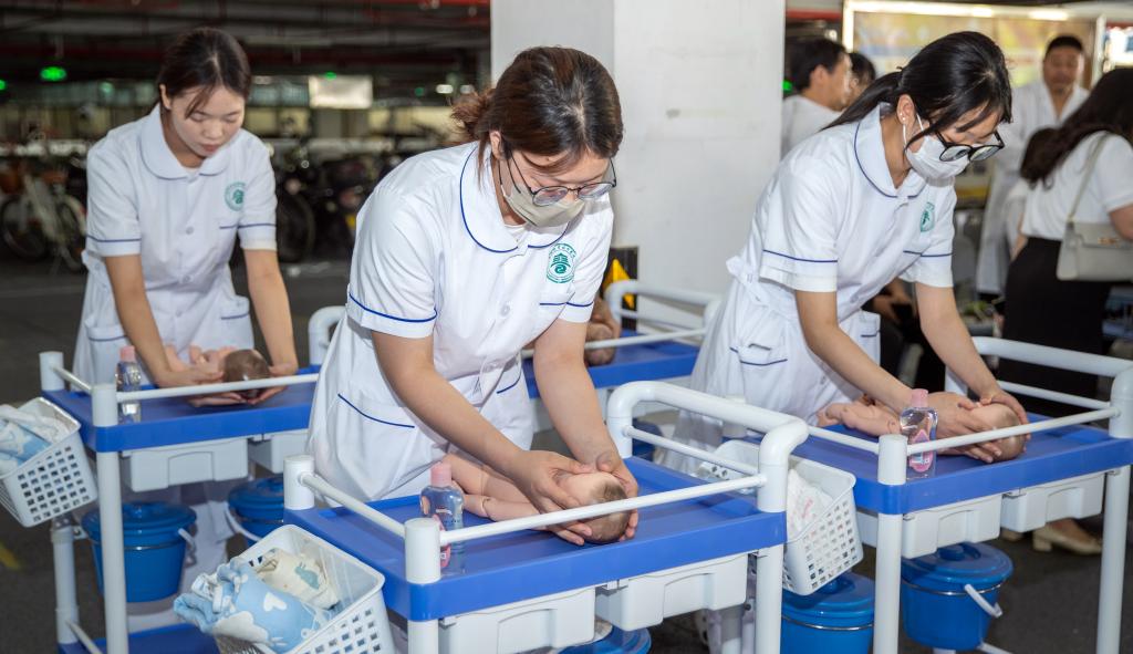 心理啦啦操表演展示了宜职学子活力与健康;护理学院学生现场演示婴儿抚触、心肺复苏、协助老人使用助行器、中药养生等技能,动作规范、操作娴熟,充分展现“白衣天使”的专业素养;医学院的数字化皮肤检测、推拿保健按摩、心肺复苏、海姆立克法展示吸引众多师生参与互动;一张张红纸在师范学院学生的手下变成一朵朵鲜花、一个个笑脸,心灵手巧体现得淋漓尽致。