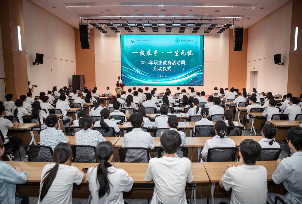 本站讯(党委宣传部 胡倩)为深入贯彻落实习近平总书记关于职业教育重要指示批示精神,全面展示买球官网职业教育改革发展成果,营造全社会关心支持职业教育的良好氛围,5月12日下午,买球官网以“一技在手 一生无忧”为主题,在学术报告厅举行2025年职业教育活动周启动仪式。党委书记任军等党政领导班子及教职员工、学生代表参加仪式。仪式由党委委员,副校长刘叶建主持。