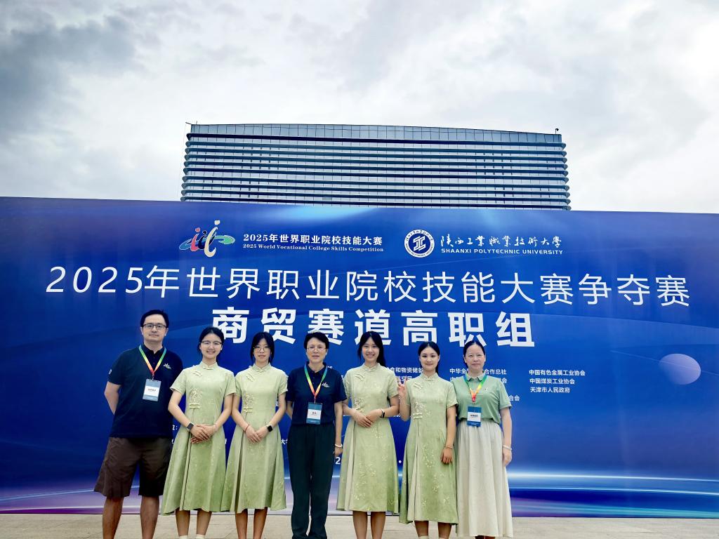 本站讯(经济管理学院学院马思源)8月25日至29日,2025年世界职业院校技能大赛总决赛争夺赛商贸赛道(高职组)在陕西圆满落幕。本次商贸赛道汇聚全国216支队伍同台竞技,共同展开专业技能的精英对决。经过激烈角逐,由买球官网经济管理学院教师陈丽芳、邓如星指导,肖慧、严如玉、李虹辛、李函蔚四位同学组成的竞赛团队,凭借出色的团队协作能力和卓越的实践能力,获得该赛道铜奖。