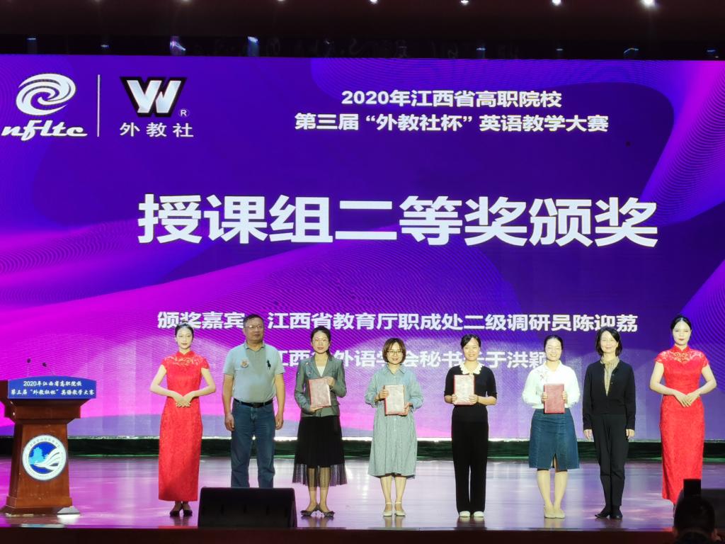 本次大赛由江西省教育厅主办,江西旅游商贸职业学院承办,上海外语教育出版社协办,是面向全省高职院校英语教师的一项重要赛事,是我省广大高职院校英语教师展示风采、展露才华的重要舞台。大赛分为微课组、授课组两个组别,由初赛、复赛、决赛三个阶段组成。来自全省37所高职院校的152名教师参加比赛,提交授课作品24项、微课作品31项。经过激烈的角逐,我院严昳芳老师荣获授课组二等奖、陈艳辉教师团队荣获微课组二等奖,充分展现了我院教师扎实的语言功底和精湛的教学艺术。