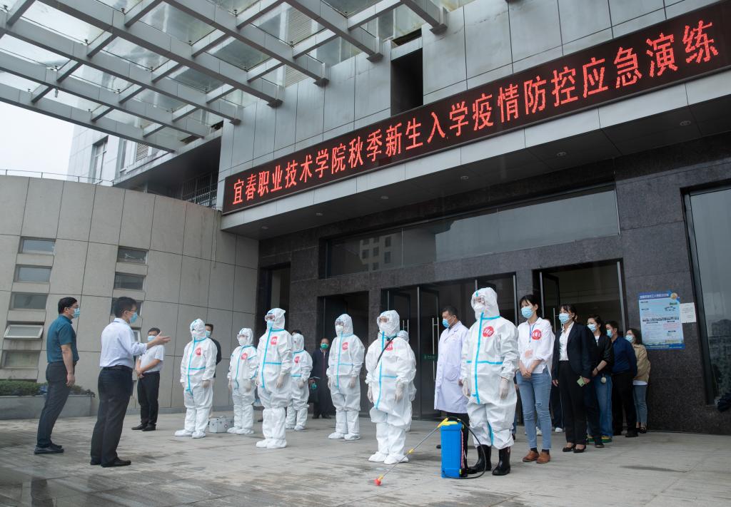 本站讯(党委宣传部 吴霞)10月,买球官网新生即将报到。为了确保疫情防控工作万无一失,学校开学平稳有序,9月29日下午,买球官网开展了秋季新生入学疫情防控应急演练。党委书记任军、校长杨云山出席活动。宜春市人民医院感染管理科科长黄文智,凤凰街道滩下社区干部受邀观摩指导。
