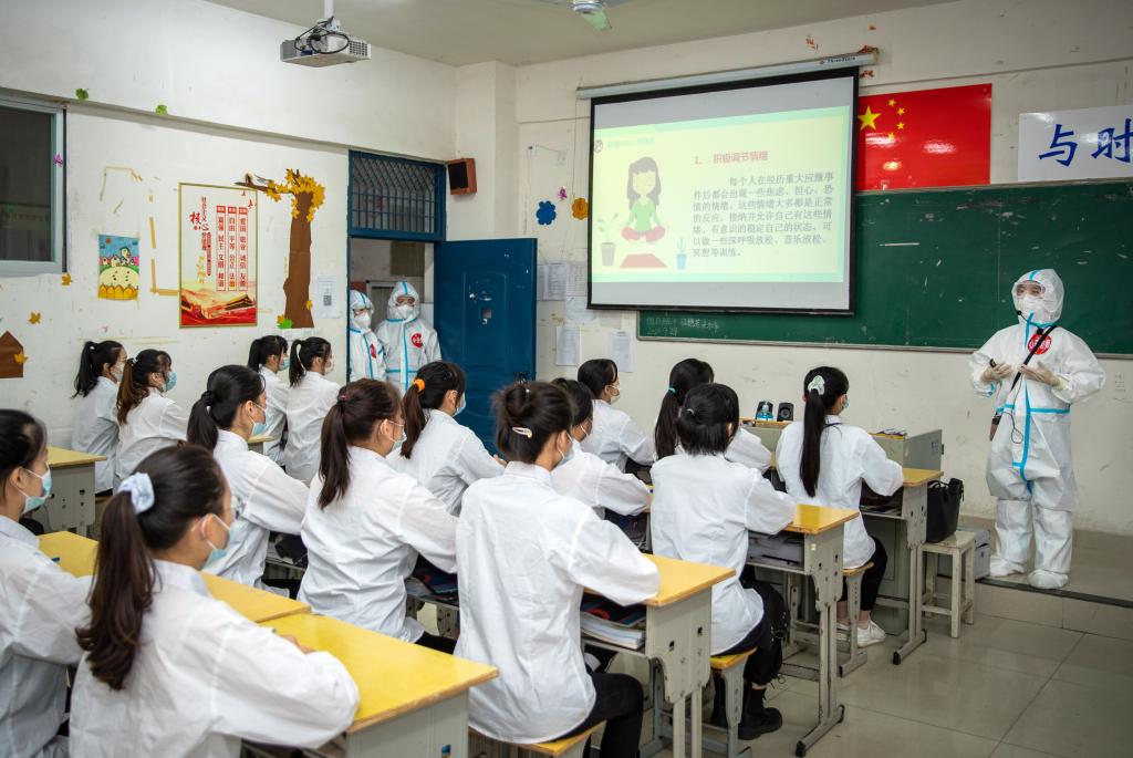 学工人员配合摸排密切接触者,心理健康老师对其他同学进行心理疏导,引导学生配合学校防疫工作。后勤工作人员对寝室、教室、楼道进行消杀处理,本次演练结束。