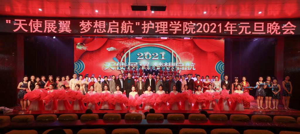 本站讯(护理学院 李珊 学生记者 卢青艺 饶玉婷) 12月29日晚,护理学院在科技综合楼学术报告厅举行2021年“天使展翼 梦想启航”元旦晚会。校党委书记任军,校党委副书记、校长杨云山,校党委委员、副校长刘军,继续教育学院院长闫瑞朝,学工处处长谢海英,团委书记施旸,教务处处长吴少林,国际教育学院党总支书记刘海云,继续教育学院副院长文灏,校友工作办副主任林先梅,党政办副主任文欢,护理学院全体班子成员,部分教师和班主任代表,现场500余名学生和互联网3万余观众观看了晚会,一起分享新年的喜悦。