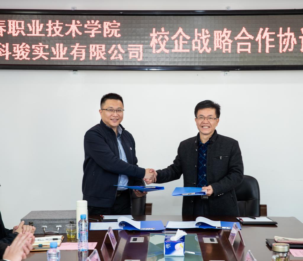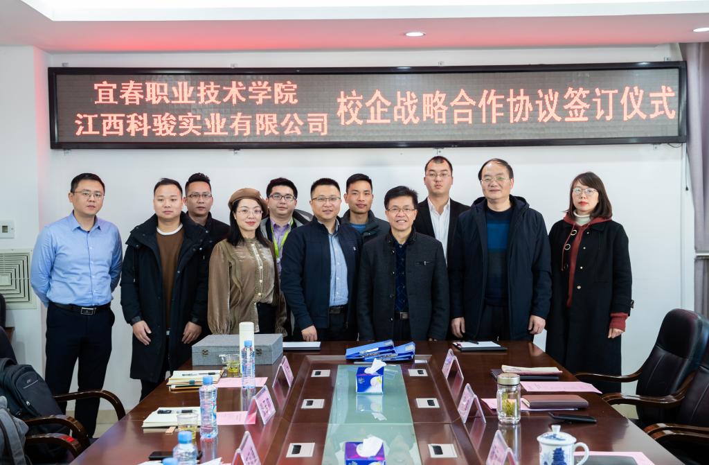 本站讯(教务处 吴少林)为贯彻落实《国家职业教育改革实施方案》、《教育部江西省人民政府关于整省推进职业教育综合改革提质创优的意见》等文件精神,积极推进职业教育提质培优,深化产教融合、校企合作及精准对接产业的技术技能人才培养,12月30日,买球官网与江西科骏实业有限公司在科技综合楼615会议室举行校企战略合作的签约仪式。