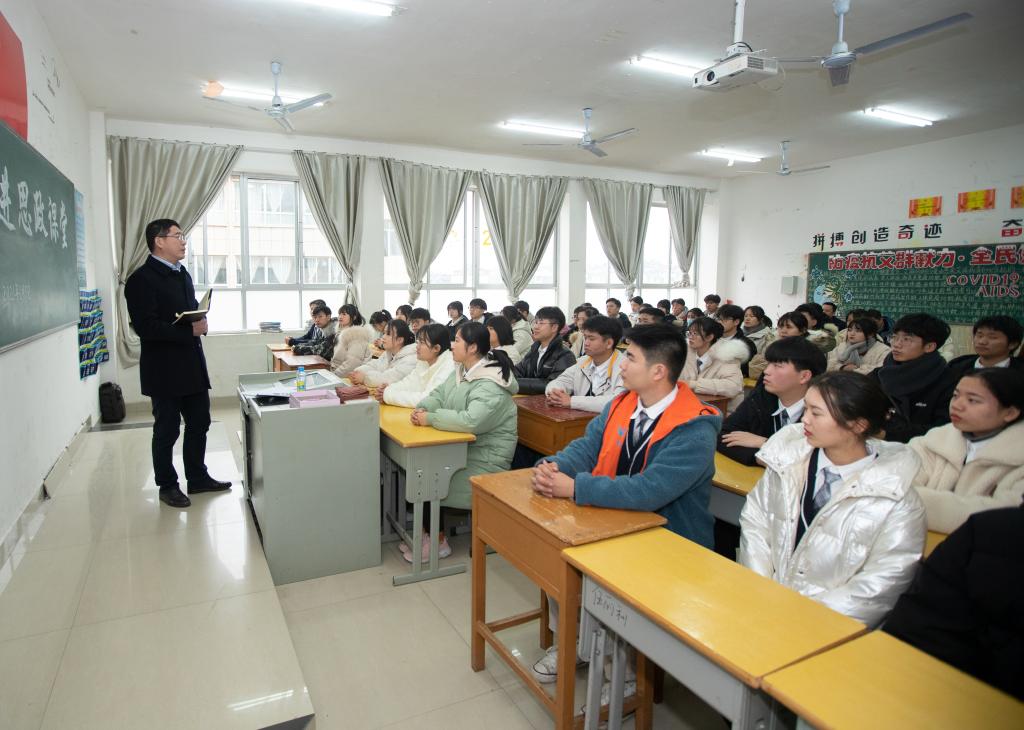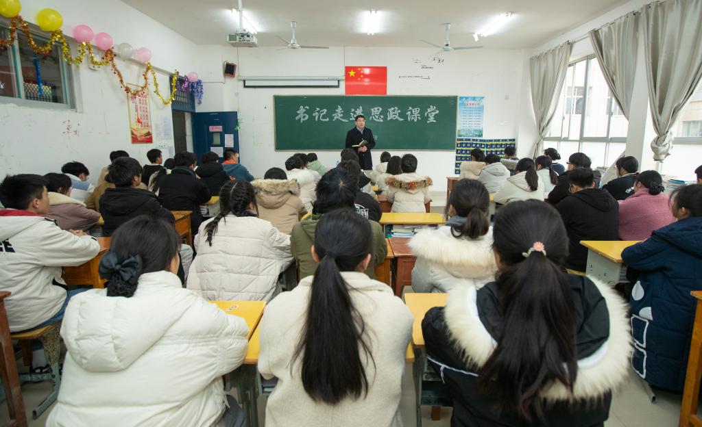 本站讯(护理学院 胡蓉 张蔺珊)为深入贯彻习近平总书记思政课教师座谈会讲话、中共中央办公厅国务院办公厅《关于深化新时代学校思想政治理论课改革创新的若干意见》精神,进一步落实立德树人根本任务,1月5日下午,校党委书记任军来到护理20301班,为所教导班级的学生们上了一堂有料、有趣、有味的思政课。护理学院班子成员和班主任老师聆听了思政课。