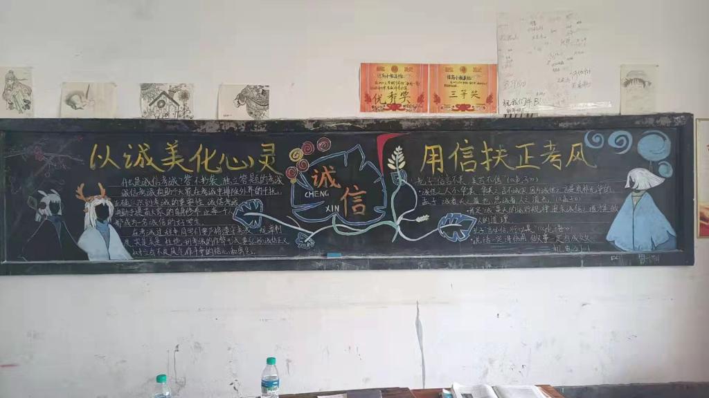 本站讯(机电与新能源汽车学院 周勤 学生记者 刘鑫)为了严肃考风考纪,营造出一个健康良好的考试氛围,我院在12月29号开展了“以诚美化心灵·用信扶正考风”为主题的室内板报评比活动。