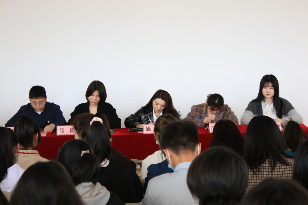会议伊始,校学生会主席团成员廖闽梦、黄聂甜分别宣读2022年校学生会工作人员退任名单及实习期工作人员通过名单。上一任校学生会执行主席辛芊芊从“渗透红色思政教育”“加强服务意识”两点对学生会上学期工作进行总结,并针对学生会内部存在的问题与不足提出改进建议。随后,本学期校学生会执行主席张云对校学生会未来发展方向作出展望。她希望全体工作人员能始终秉持“全心全意为同学服务”的精神,以热情饱满的态度投入工作,持续推动学生会内部建设从“减脂肪”到“增力量”的实质性转变,让清新阳光、拼搏奋进的健康气息充盈在学生会组织当中。实习主席团代表吴志岩和杨可欣同学则分享了实习期间的宝贵经历。两位同学表示,他们在服务同学的过程中,增进了对学生会工作的理解,也使自身得到磨练与成长。