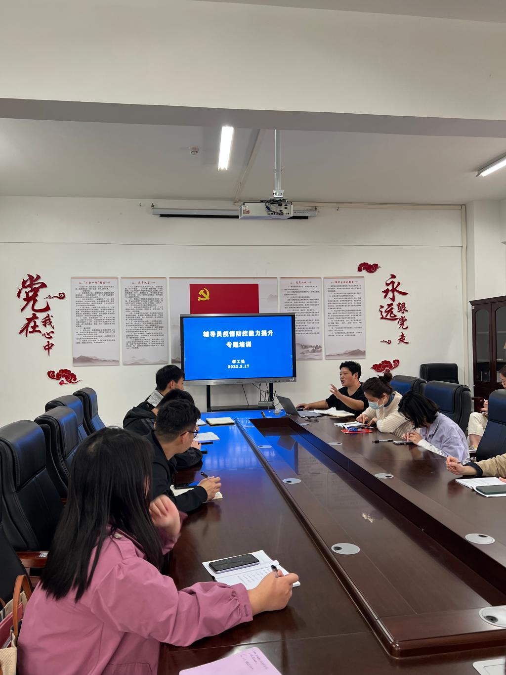 本站讯(学工处 刘宜波)为从严从紧做好学校疫情防控工作,进一步增强辅导员的疫情防控意识和防控能力,保障学生身心健康,3月17日下午,买球官网学工处在科技综合楼401开展了辅导员疫情防控能力提升专题培训,全体一线专职辅导员参加培训,培训由学工处处长谢海英主讲。