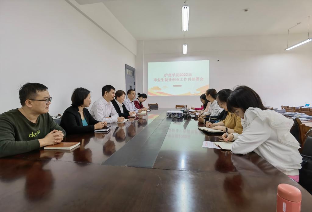 本站讯(护理学院 张蔺珊 刘明健)为积极推进我院2022届毕业生就业创业工作,4月21日,护理学院召开2022届毕业生就业创业工作再部署会。会议由护理学院院长熊杰平主持,学院全体班子成员及各科室负责人参加了会议。