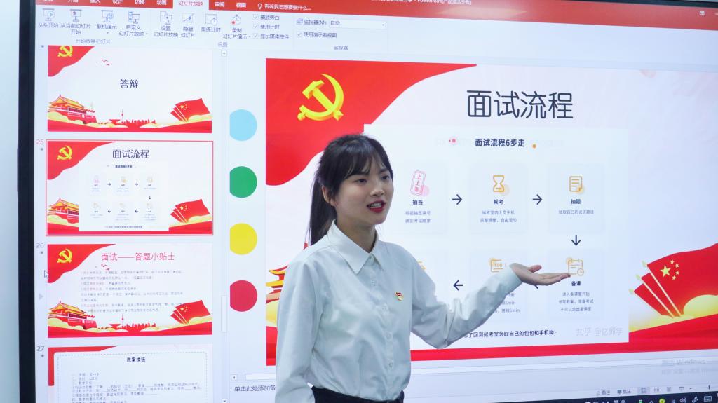 交流会上,来自师范学院的学生党员17高小教1班汪静雯、17高小教2班彭华平、17高小教6班袁梦辉分享他们关于教师资格证的备考、普通话的练习、专业知识的学习等经验。彭华平同学针对教师资格证报名、笔试、面试、认定等流程进行了分享,对笔试的备考方法、考试时的注意事项进行了重点讲解。袁梦辉同学结合自身复习考试经验,分享结构化面试环节的训练及专业知识、普通话的学习。汪静雯同学从试讲流程、教案的撰写、教学仪态等细致讲解了教师资格证试讲的注意事项。为了让同学们做好笔记,机关第六党支部为每位同学准备了精美的笔记本和笔。交流现场气氛热烈,同学们认真听取经验,纷纷提出问题,3位学生党员耐心地为同学们答疑解惑。