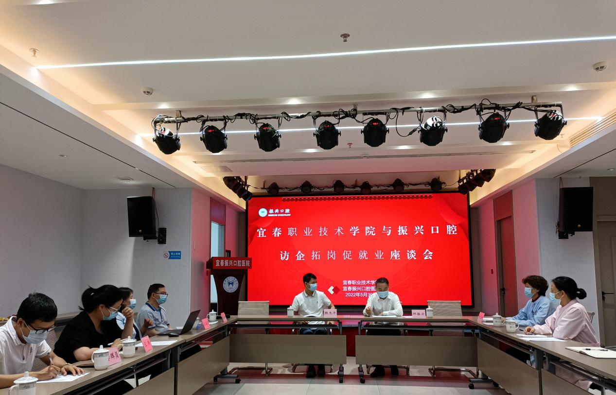本站讯(护理学院 李辉员)为深入贯彻落实党中央、国务院关于高校毕业生就业工作的决策部署,有力促进买球官网毕业生更加充分、更高质量就业。近日,护理学院院长熊杰平、实习就业处副处长袁剑峰,护理学院副院长易国萍、党总支副书记王玮、实习就业科科长李辉员一行5人前往宜春振兴口腔医院开展访企拓岗促就业专项行动。振兴口腔医院院长邱振兴、副院长苏兰萍、总护士长刘国玲出席会议。