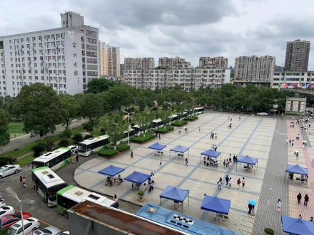 此次四六级爱心送考活动是机关第五党支部践行“我为学生办实事”的重要举措。疫情当前,本次考试大巴车助考活动面临诸多困难,机关第五支部书记吴少林说道,为了确保本次考试的顺利进行,支部积极号召党员开展志愿服务,在前期摸底的基础上,确定考点乘车人数,合理规划点对点行车路线,及时协调汽运公司确定车辆数量,确保每一辆车都有专人志愿服务。6月11日,16辆大巴车准时到达新校区接载学生,截止早上八点半,将1000多考生送达到位,考试结束后从老校区将学生接回。