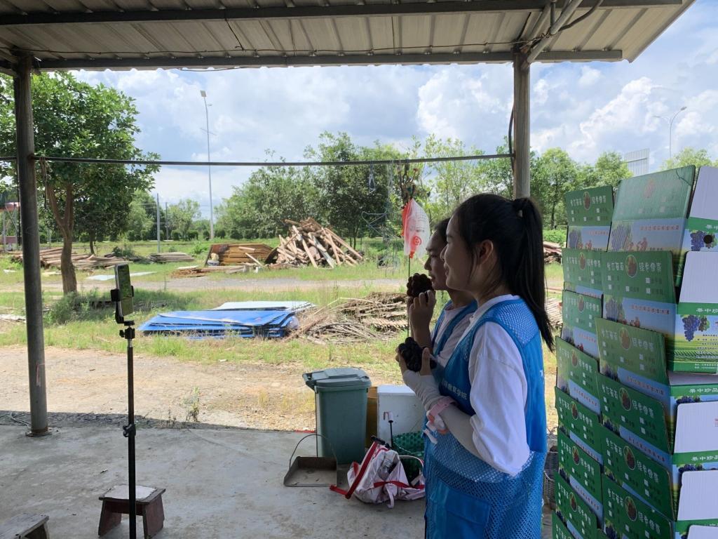 “小雏鹰”团队成员以帮助罗坊镇葡萄种植户推销葡萄为试点,开展助农活动。同学们利用抖音热曲改编的方式,将罗坊文化特色与产品优势有机结合,通过直播促进罗坊镇村民的葡萄的销售。并且还手把手帮助店家创建抖音账号、小红书账号等提高种植户自主拓宽销售渠道的能力。团队成员们的志愿活动得到了当地农民的交口称赞。