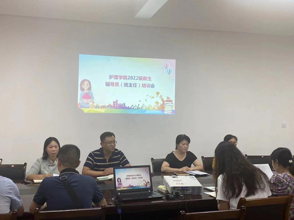 本站讯(护理学院 刘明健)为加强护理学院辅导员(班主任)队伍建设,确保新学期各项工作的有序开展。9月7日下午,护理学院在和济楼C218召开2022级新生辅导员(班主任)培训会。护理学院全体班子成员、各科室负责人、年级组长及2022级新生辅导员(班主任)参加会议,会议由党总支书记胡蓉主持。