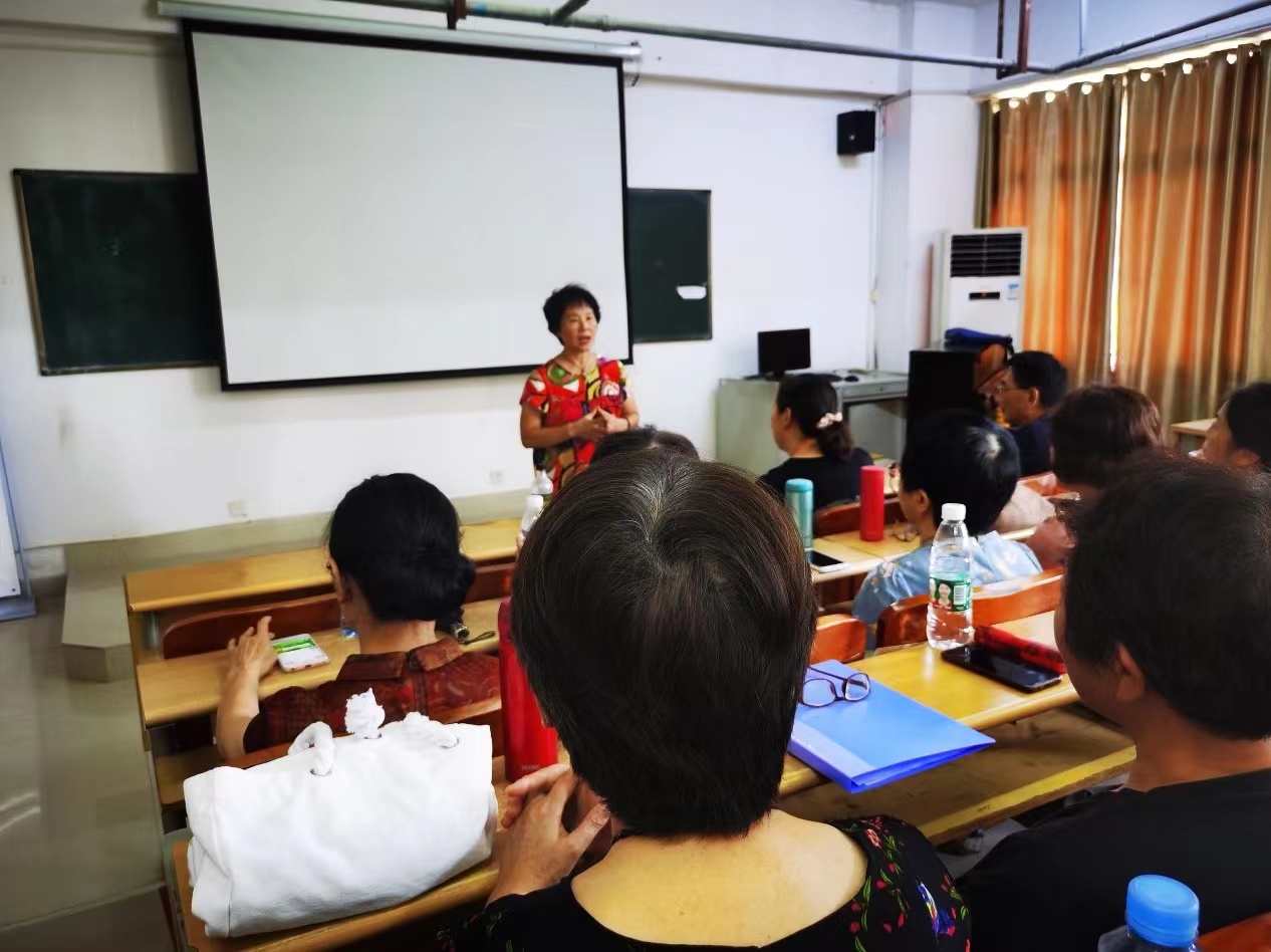 9月19日下午,副校长刘叶建在离退休人员管理处副处长彭香萍的陪同下,亲临训练现场,为合唱团送来学校的祝贺和期望。她在致辞中说,职友合唱团的组建是学校老干部工作的一件大事,更是一件喜事,今天的第二场开训标志着合唱团已经在教学运行上迈出了一大步。她希望合唱团在今后的声音训练和公益活动中,紧贴新时代,把握主旋律,唱响新生活,助推学校新发展。