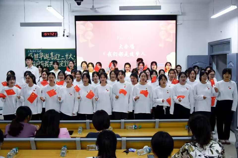 此外,各班级团支部也通过诗歌朗诵、小品演绎、歌曲合唱等形式开展。红旗飘飘,初心依旧,师范学院学前22204班的同学们以优美曼妙的舞蹈《我和我的祖国》展示出她们对伟大祖国的崇高敬意,荣获了此次活动第三名。机电与新能源汽车学院汽车22303班的同学们悠扬婉转、铿锵有力地齐声合唱团歌,传达出了青年学子们强烈的民族自豪感和浓浓的爱国情怀,荣获了此次活动第二名。护理学院助产22301班则作为本次示范性主题团日活动班级荣获第一名。
