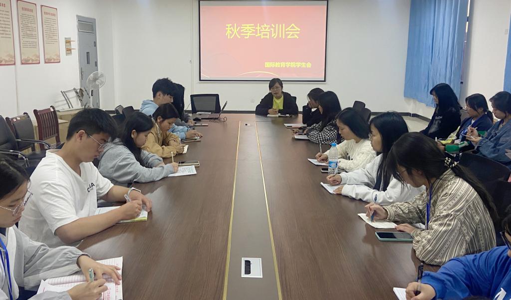 本站讯(国际教育学院 杨琨 学生记者 潘艺)为深入学习贯彻习近平总书记在庆祝中国共产主义青年团成立100周年大会上的重要讲话精神,深化学生会改革工作,进一步提高本院学生会工作人员的积极性、主动性,促进学生会工作有序地开展,国际教育学院于9月29日晚在博达楼B502召开学生会秋季培训会,会议由国际教育学院团总支书记杨琨老师主持,学生会全体工作人员参与此次大会。