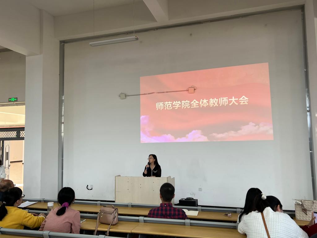 会上,师范学院党总支副书记任玉慧同志带领全体教师一起学习党的二十大报告,对报告的主题、十年来对党和人民事业具有重大现实意义和深远历史意义的三件大事、中国共产党的中心任务、必须牢牢把握的五个重大原则作出了解读,号召全党同志务必不忘初心、牢记使命,务必谦虚谨慎、艰苦奋斗,务必敢于斗争、善于斗争,坚定历史自信,增强历史主动,谱写新时代中国特色社会主义更加绚丽的华章。