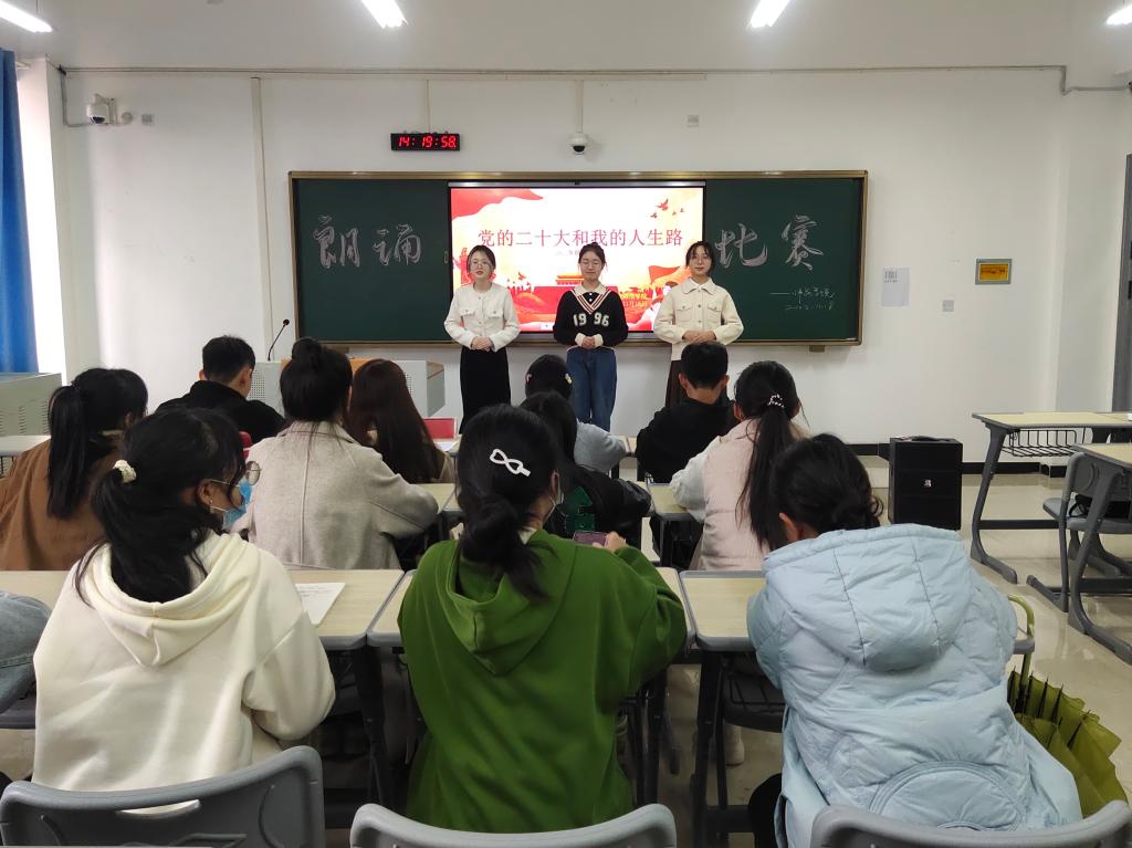 本站讯(师范学院 霍文杰 学生记者 杨垚)11月18日下午,师范学院在正心楼B408教室举办了主题为“党的二十大和我的人生路”朗诵比赛,共有75个在校班级参与了此次活动。本次比赛的评委有师范学院领导任玉慧、师范学院团总支负责人霍文杰及辅导员袁旭。