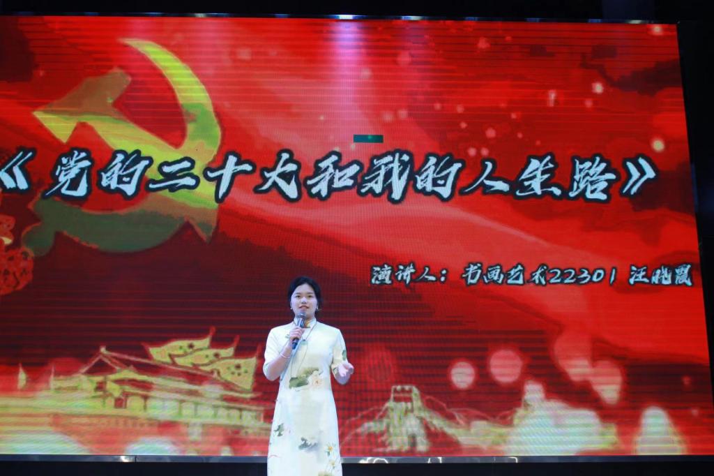 本站讯(艺术与设计学院 吴卿妍)为深入宣传学习贯彻党的二十大精神,深化青年学生对“强国有我,请党放心”的认识与实践,营造积极向上、健康文明的校园文化,12月6日下午,艺术与设计学院在博达楼小礼堂举行“党的二十大和我的人生路”演讲比赛。