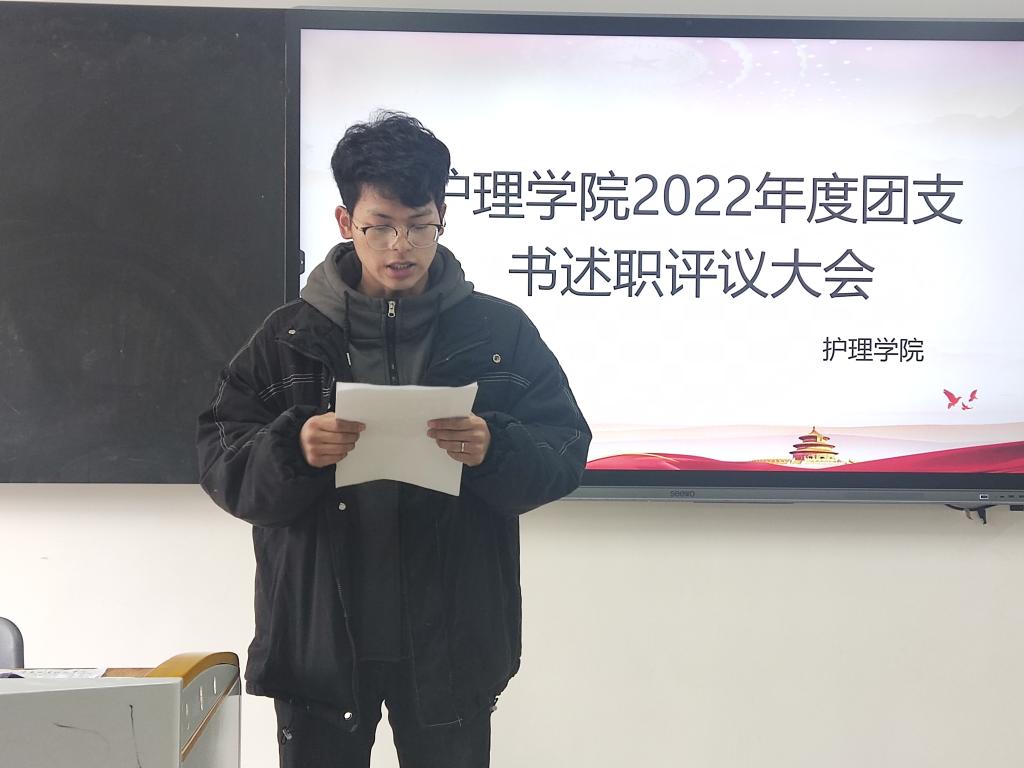 本站讯(护理学院 陈佳泠)为加强团支部书记队伍建设,扎实推进全面从严治团,提升基层团支部建设活力,12月7日,护理学院在和济楼C302召开2022年度团支书述职评议大会。述职评议大会由院团总支书记刘小三主持。