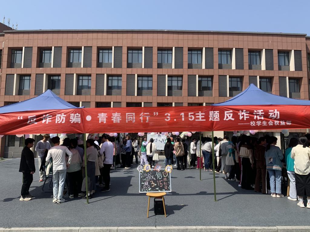 本站讯(团委 梅应轩 学生记者 周灵燕)3月15日是国际消费者权益保护日,为提高同学们维权意识,进一步倡导理性消费,谨防诈骗陷阱,3月15日,校学生会权益部在思创楼大门口开展“反诈防骗 青春同行”系列活动。