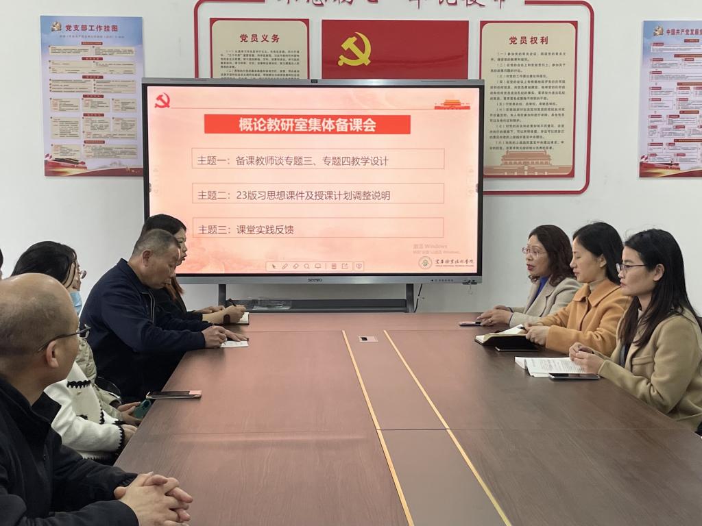 随后,张正芳回应并总结了备课会所提出的问题,明确了下一次集体备课会主题,对最新版《习近平新时代中国特色社会主义思想概论》课件及授课计划调整进行说明,提醒教师及时更新课件,调整授课计划。