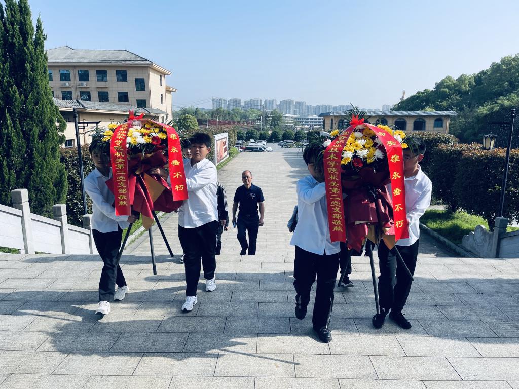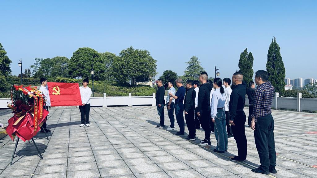 活动现场,学生手抬花篮,党员紧跟在后,缓缓向前,来到革命烈士纪念碑前,向烈士敬献花篮。易志芳带领全体党员和学生向革命先烈默哀。在烈士墓碑下,全体党员和学生学习国家安全观知识,学习师德师风警示教育案例,重温入党誓词。支部党员还瞻仰烈士英名墙,向学生讲授英名墙故事。