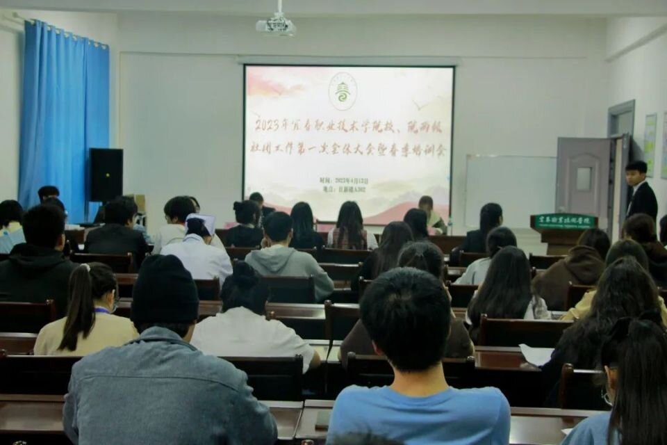 本报讯(团委 彭良婧 钟泽宇 学生记者 沈江熠)4月13日,我校团委、校社团工作部在日新楼A302召开校、院两级社团工作第一次全体大会暨春季培训会。校团委副书记杨雨、素质拓展科科长彭良婧、干事钟泽宇及校、院两级社团负责人、院级专职主席、团支书等70余名师生参加会议。会议由社团工作部成员贾欣娜主持。