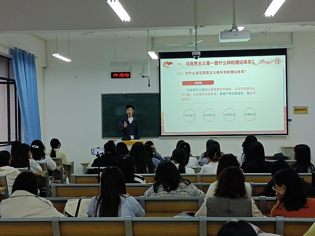 本站讯(马克思主义学院 宋丹丹)为充分发挥思政课铸魂育人主渠道作用,进一步提升思政课教师专业素养,4月18日下午,形势与政策教研室在和济楼C502开展了公开课教学观摩活动,思政课任课教师到场观摩学习。