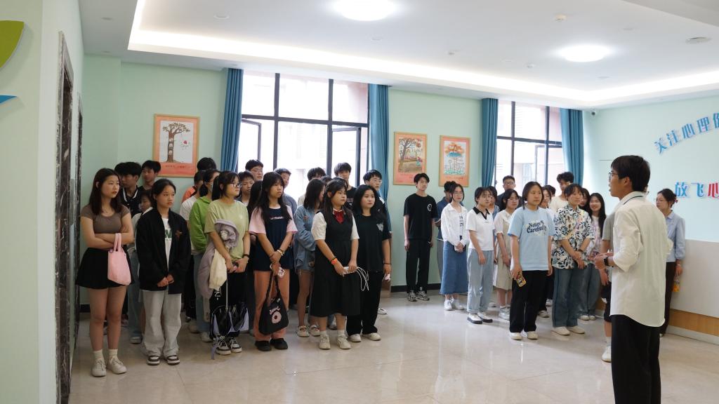 心理健康教育中心为同学们介绍中心概况及心理咨询的工作理念。随后,胡艺苑带领同学们参观了沙盘游戏室、情绪宣泄室、音乐放松室和VR虚拟室等功能室,并依次体验了音乐放松椅、爱的抱抱人、宣泄假人等仪器设备。新老校区的心理委员及心理健康教育协会会员集聚在团体辅导室,对心理健康教育工作进行交流、探讨。最后,机关第六党支部书记谢海英对心理委员及心理健康教育协会在校心理健康教育工作中发挥的重要作用给予肯定,希望两支队伍再接再厉,继续发挥朋辈互助作用,并对今后的心理建设工作提出了针对性建议。