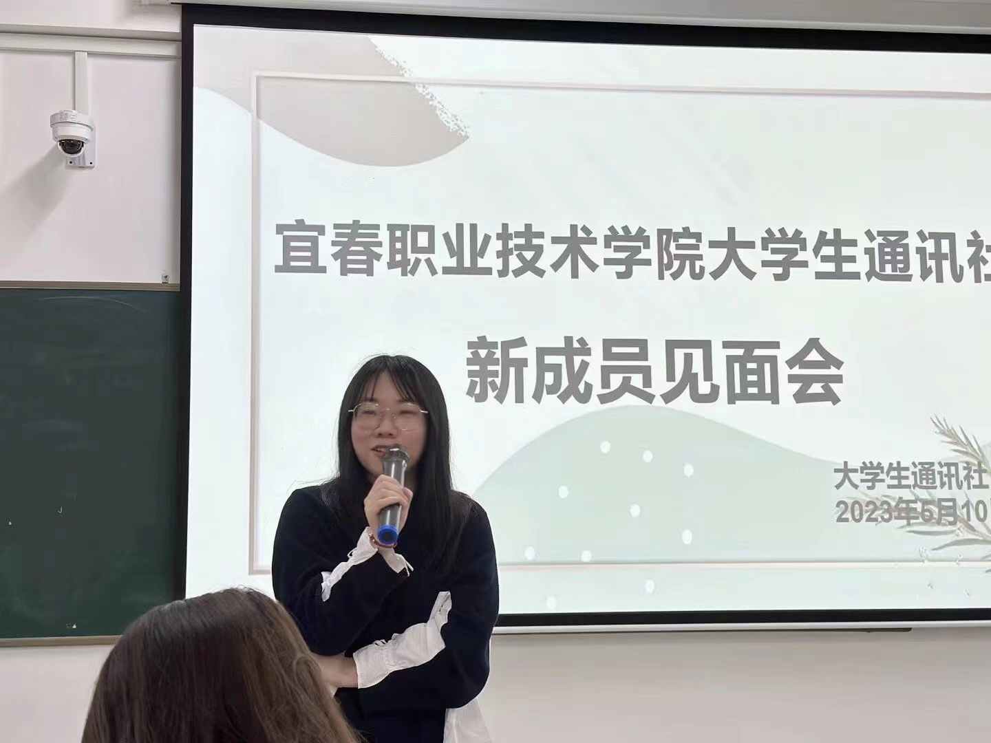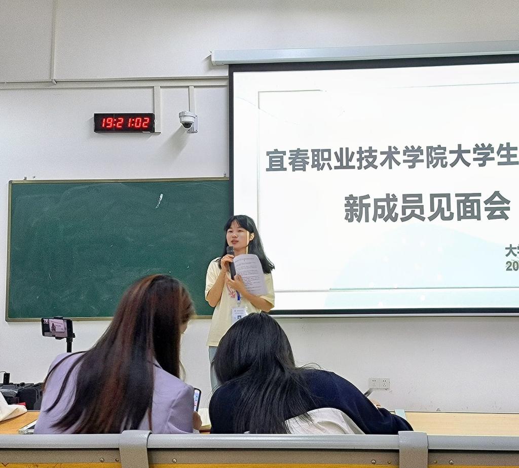 副社长易婕发言。她对新成员的加入表示热烈欢迎,真心感谢每一位在不同岗位上尽职尽责的伙伴。易婕对社员们提出四点要求:一要严格遵守大学生通讯社的各项规章制度,热爱集体与部门,有明确的奋斗目标;二要虚心求教,积极主动地思考,学会总结、不断创新;三要有合作意识,充分发挥团队的作用;四要学会正确处理部门与学习的关系,在工作中得到快乐。