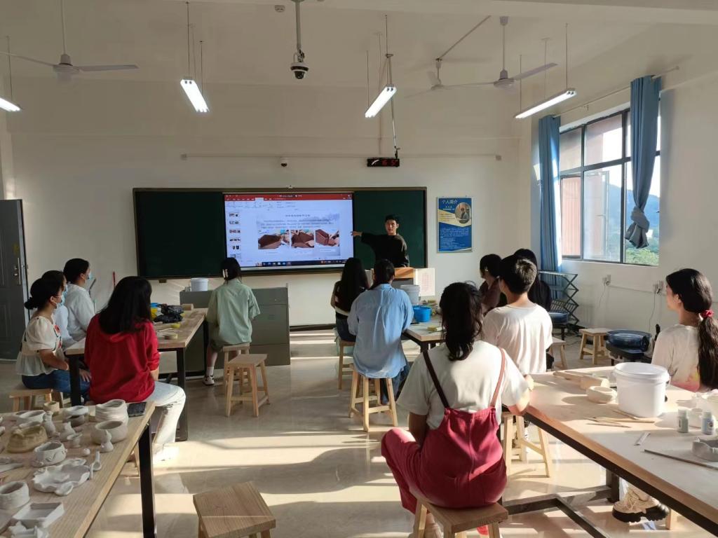 本站讯(艺术与设计学院 彭海艳)为提高学生们的创意表达能力和动手能力,让学生们感受陶瓷文化和体验手工陶艺的乐趣,展现学院学子的艺术修养,5月18日下午,艺术与设计学院在博达楼陶艺实训室开展职业技能周系列活动之陶艺实践课程活动。