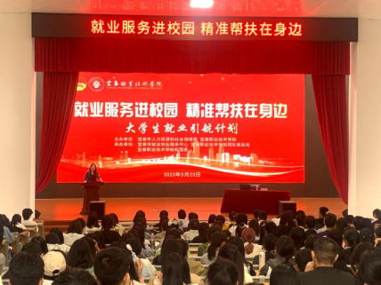 本站讯(招生就业处 叶高亮)5月23日下午,由招生就业处、校团委联合举办的“公共就业服务进校园”活动在买球官网仁济楼小礼堂举行,现场300余名师生代表参加活动,此次活动得到了宜春市就业创业服务中心的大力支持,中心副主任李俊春、中心公共就业服务科科长田馗等到场指导。