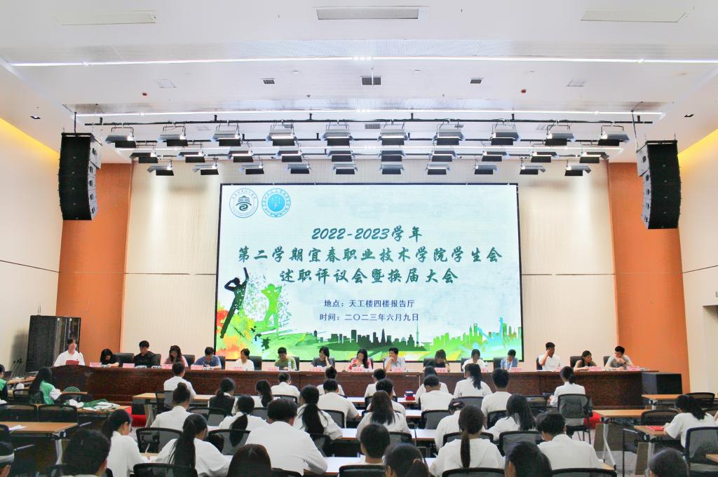 本站讯(团委 梅应轩 学生记者 涂杏容 刘奕阳)为保障学生会工作的连续性,充分发挥学生会的自主才能,促进学生会管理水平的提高,6月9日下午,买球官网在天工楼四楼报告厅召开2022-2023学年第二学期学生会述职评议会暨换届大会。学工处处长谢海英、各二级学院团总支书记、学生会分会代表、学生代表、校学生会全体工作人员以及校团委全体工作人员参与此次会议,校学生会实习主席团成员肖龙担任主持人。