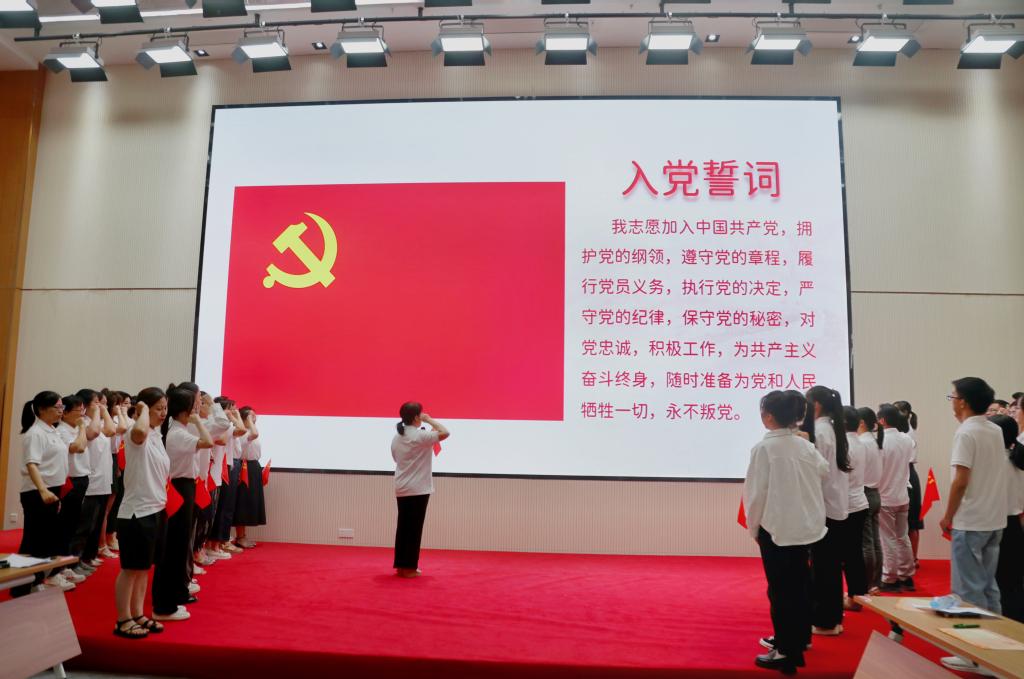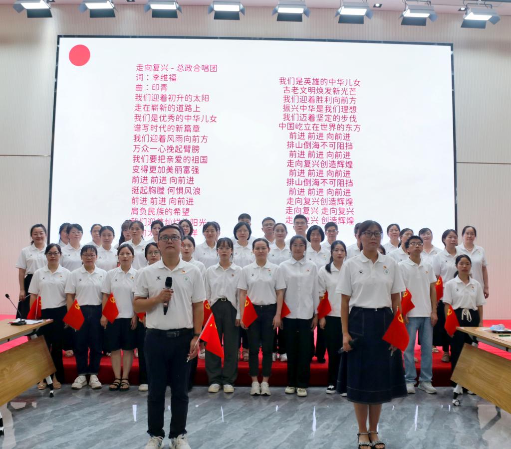 本次主题党日活动分为四个环节进行,分别是“学习”“分享”“展示”“过政治生日”。在“学习”环节,全体党员通过观看视频、学生诵读党的二十大精神、周玥同志“以党的二十大精神引领职教高质量发展”主题党课等多种形式学习党的二十大关于职业教育的重要论述。在“分享”环节,党员教师胡祖昌、赵丽丽、吴少林以参赛、带赛经历为切入点,结合实际谈感悟、立足岗位讲担当,分享了自己在学习过程中的感思、感想、感言。在“展示”环节,开展了党的二十大知识竞赛,以答题展示了党员同志们的学习成果。在“过政治生日”环节,党总支为6月入党的同志过集体“政治生日”,颁发政治生日贺卡,党员代表刘爱珍、杨红、陈丽红畅谈入党初心,胡蓉带领全体党员重温入党誓词,铮铮誓言激励着党员们回望入党初心,践行职责使命。活动在合唱《走向复兴》嘹亮的歌声中圆满落幕。
