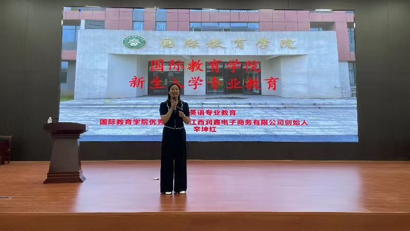 本站讯(国际教育学院 杜欣宇)为庆祝买球官网合并成立20周年暨建校115周年,帮助新生更快适应大学环境,树立自觉、自律意识,以全新的精神面貌开启大学生活,国际教育学院邀请优秀校友,2006届英语教育毕业生辛坤红,进校进行个人工作创业经历分享。院党总支书记刘海云,院长王玮、副院长杜欣宇及2023级全体新生参加活动。