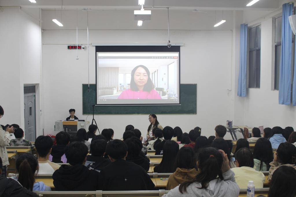 28日下午,国际教育学院2006届英语教育毕业生、江西润鑫电子商务有限公司创始人辛坤红也来到天工楼学术报告厅,为大家进行“心中有方向、未来不迷茫”的经验分享。国际教育学院副院长杜欣宇到场主持,学院近两百名学子参与学习交流。辛坤红首先为大家讲述了她在母校的求学生活,一张张生动的老照片不仅承载着她的青春记忆,还记录着学校的蓬勃发展,熟悉的校园生活引起了现场学子的共鸣。在她分享自己不惧困苦勇闯职场,成功创业报效家乡的职业经历后,现场更是敬佩不已,掌声响动。在学弟学妹们的殷切提问后,辛坤红为大家提出了四个建议,即“珍惜与勤学,笃实与坚持,技能与挑战,感恩与回报”。她号召大家大胆做梦,敢闯敢拼,不给自己的未来设限,并进行了现场的招聘,欢迎大家成为她的伙伴,一同成为“新农人”,乘着网络时代的东风,助力家乡振兴,将宜春的产品带到世界各地去。