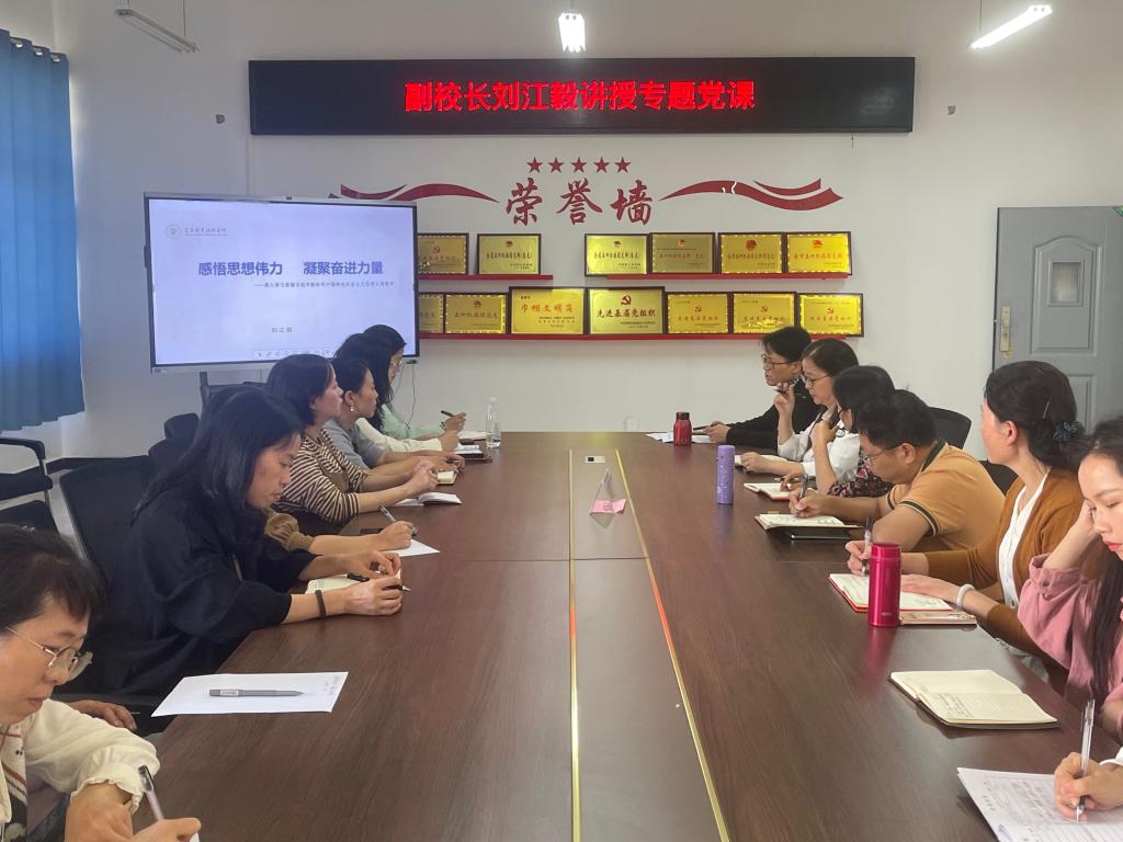 大家一起学习研讨了习近平总书记在江西考察时的重要讲话精神。接着,刘江毅以“感悟思想伟力 凝聚奋进力量”为主题,围绕习近平关于职业教育的重要讲话精神,从“永葆一颗红心”“践行两种理念”“提升三项能力”三个方面展开讲授。最后,刘江毅分享了自己参加进修班时的学习体会与收获。
